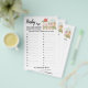 Cartão de jogo para chá de bebê de animais da faze