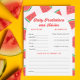 Adicione diversão à sua comemoração com este Cartão de Jogo de Predições para Bebês do Chá de fraldas de Melancia Personalizado! Perfeito para ideias de chá de fraldas de melancia e um toque bonito para um tema de chá de fraldas de melancia. Excelente para a menina das ideias do chá de fraldas de melancia, este cartão de jogo é uma atividade doce para as ideias do chá de fraldas de verão e ajustados perfeitamente com os temas do chá de fraldas de verão. É preciso ter para qualquer chá de fraldas de verão!