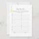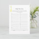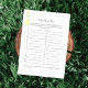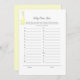 Este é um cartão de jogo de chá de fraldas da Raça do Nome do Bebê. Animais de pelúcia, girafa, bonitos, amarelos, em fundo branco, na frente, e fundo amarelo com pontos de polca brancos na parte de trás.