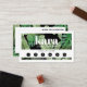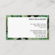 Uma ilustração aquosa das folhas tropicais verdes sobre fundo preto adiciona uma estética chic a esta moderna carta de fidelidade. Uma fonte em negrito na frente mostra seu nome de marca contra o fundo escuro. Esta placa de lado duplo oferece muito espaço na parte traseira para seu nome e detalhes de contato. Ilustração e design © 1201AM Design Studio | www.1201am.com