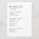Bem-vindos aos seus hóspedes em estilo com este cartão de fim de semana minimalista do casamento. Esta nota de boas-vindas do casamento permite-te criar facilmente um itinerário de casamento personalizado para o teu fim de semana especial, assegurando que os teus convidados tenham todas as informações de que precisam. O design moderno complementa qualquer estilo de casamento mínimo, fazer a adição perfeita ao seu saco de boas-vindas de casamento quando seus hóspedes entrarem em seus quartos!