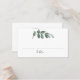 Cartões de Casamento Verde Elegante ou Cartões de Local de Eventos: Esta design apresenta uma folha pintada de cor aquosa macia no topo. A parte de trás apresenta as iniciais do casal e a data do casamento cercada por uma coroa rústica minimalista.