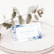 Faça seu dia de casamento único com nosso cartão de lugar azul-toile. Este cartão inclui um espaço para nome de convidado e número da tabela, tem o nome da noiva e do noivo no verso. Personalize seu texto para um na moda adicional ao seu casamento e facilmente impressão com Zazzle!