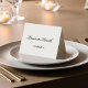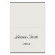 Cartões de local de casamento clássicos e elegantes com nome do convidado personalizado e número da mesa em fundo bege moderno.