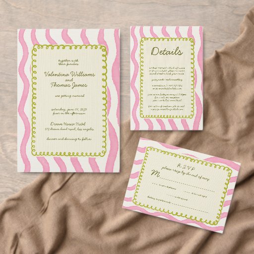 Cartão de Local de Casamento Rosa e Verde Moderno