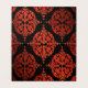 Cartões de local de mesa de casamento vermelhos, pretos e dourados com coração de cetim vermelho rico e fundo de damasco vermelho, preto e dourado. Basta usar uma caneta que escreva com tinta dourada ou branca para adicionar as informações do seu evento a esses elegantes cartões de local de mesa de casamento vermelhos, pretos e dourados.