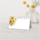 Este cartão de lugar dobrado é mostrado em branco básico com um adorável sotaque floral de girassol e tem exemplos personalizados. Personalize este item e altere os nomes e a data para o que você precisa com este modelo.