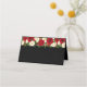 Este cartão de lugar dobrado é mostrado a preto com uma festiva terra de rosa vermelha de Natal. Personalize este item ou comprar como está.