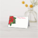 Este cartão de lugar dobrado é mostrado em branco com uma flor festiva de poinsettia vermelha de Natal. Personalize este item ou comprar como está.