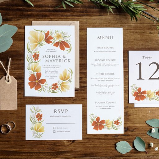 Cartão de Local Floral Laranja e Marigold