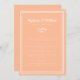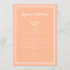 Simples, minimalista e elegante Menu Casamento apresenta um design contemporâneo com uma dupla borda de quadros em branco nítido sobre um fundo de pêssego contemporâneo. A formulação tradicional proporciona sofisticação eterno mas moderna. Personalize o design do casamento com os detalhes do menu em letras brancas e roteiro. A parte traseira da placa corresponde a pêssego sólido.