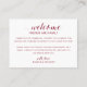 Este charmoso cartão de boas-vindas, colocado em sua bolsa de boas-vindas ou cesta em suas acomodações, é uma boa maneira de obrigado seus convidados fora da cidade para o viagem que eles precisavam fazer para chegar ao seu casamento. Material de papelaria e material de festa disponíveis.