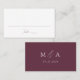 Cartões modernos de núpcias com um roteiro de caligrafia roxa na frente com um fundo branco. A parte de trás dos cartões de lugar contém suas iniciais de monograma e sua data de casamento mostrada abaixo em letras brancas em um fundo roxo. As elegantes cartas de roteiro são perfeitas para recepções de casamento modernas, jantas de ensaio e outros eventos especiais.