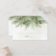 Belo cartão de casamento com ilustrações botânicas a cores pintadas à mão de verde-inverno, pinheiro e ramificações, cones e bagas sagradas. Escolha perfeita para casamentos temáticos de inverno ou Natal.