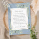 Apresentando delicadas folhas de cor d'água em um fundo azul empoeirado, esta elegante obrigado do dia do casamento que você recebe pode ser personalizada com sua mensagem de obrigado especial. Um obrigado especial para os seus hóspedes. Projetado por Thisnotme©