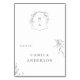 Folhas botânicas ilustradas à mão em preto e branco, e monograma de brasão de folhas botânicas elegantes no verso, simples e luxuoso, ótimo cartão de lugar para casamento rústico de verão, chá de bebê e chá de noiva de jardim botânico de primavera,