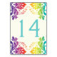 O arco-íris cola a placa de lugar do número da tabela do casamento tema damasco que apresenta um motivo damasco em cores arco-íris no fundo do marfim. Este design moderno, porém clássico, é um modelo e faz parte de um casamento adequado para um primavera, verão de casamento outono com um tema arco-íris. É personalizável e pode ser personalizado. Cores: Vermelho, laranja, amarelo, verde, azul, violeta roxo, marfim.
