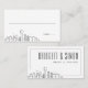 Um conjunto único de cartões de escolta de casamento para um casamento que acontece na bela cidade de Dallas, Texas. Eles apresentam um horizonte estilizado da cidade de um lado, com um ponto para o nome da pessoa ser escrito. No verso está um lugar para os nomes dos casais de casamento e a data do casamento com o horizonte também apresentado no canto inferior.