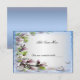 Lindo floral roxo com uma borboleta e fundo azul. Deixe seus convidados saberem onde devem se sentar com este lindo cartão de lugar. Personalize o cartão alterando o texto nos campos fornecidos na frente e atrás. Você pode alterar o estilo da fonte, tamanho, cor, bem como o tipo e estilo de papel.