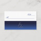 Este cartão de lugar azul e branco marinho corresponde ao convite de casamento mostrado abaixo.