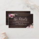 Design floral botânico de cor aquática em roxo mauve, amoreira, rosa poeirento e cor de pêssego em fundo de madeira de celeiro escuro, com escritura moderna e nomes de casais no verso, elegante e na moda, detalhes de casamento de excelente inserem cartões para casamento de jardim botânico rústico no outono e inverno. Veja todas as peças correspondentes na coleção.
