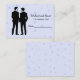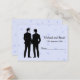 Um cartão de lugar de casamento clássico e elegante com dois noivos. As silhuetas dão um toque romântico a este lindo cartão de lugar. Esta cena minimalista é perfeita para o seu casamento romântico moderno. Este visual combina bem em qualquer estação do ano, primavera, verão, outono ou inverno. Ótimo para um casamento moderno e perfeito para um casamento clássico também!