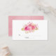 Cartões de lugar com rosas rosa e folhagem tropical com glitter dourado falso.
