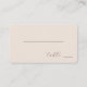 This wedding place card features a minimalist design with a soft beige background and dark brown accents. The layout includes a centered horizontal line above elegant cursive typography that reads "table," followed by an underscore for customization. Its clean, modern style emphasizes simplicity and sophistication, making it perfect for contemporary weddings. The understated elegance creates a calm and refined mood, ideal for setting the tone at your special event.