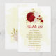 Flores vermelhas escuras e brancas românticas com folhas de ouro carta de assentos botânicos do casamento Os detalhes da brilha são simulados.