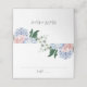 Cartão de casamento moderno, com hidrangas azuis claras/azuis poeirentas de cor aquosa, cor-de-rosa pastel, cor-de-rosa, pêssego, rosas brancas, peonias, folhas de eucalipto de sábado, galhos e folhagem. Tons românticos, suaves e sonhentos, primavera, designs florais de cor d'água de verão para combinar com o seu casamento temático. Por favor, encontre mais designs e variações na minha loja de "blisswedingpaperie". E fique à vontade para me contactar para mais personalizações ou itens correspondentes.