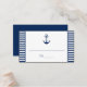 Cartões de Colocação do Tema Náutico com Faixa marinho Azul e Branca. Âncora marinho azul na frente - ・ Náutica ・ Placas de posicionamento ・ Marinho Blue e White Stripes