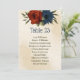 Cartão único de número de tabela com flores românticas laranja queimadas e marinho azul e folhas verdes. PARA MAIS PRODUTOS CORRESPONDENTES, clique na coleção acima ou entre em contato comigo.