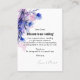 Apresentando o Cartão de Lugar Vertical da "Coleção Reverie Cornflower" encantadora, um encantador aditamento para enfeitar sua mesa de casamento com a elegância de delicados flores de milho. Na frente, cada cartão de lugar apresenta um arranjo encantador de flores azuis e roxas no topo, capturando a beleza natural de um prado florescente. Os detalhes intrincados e matizes das flores criam um ambiente sereno e romântico para sua celebração. Abaixo deste belo trabalho de arte, um espaço personalizável aguarda os nomes dos convidados e os números das mesas, assegurando um assento perfeito com um toque de sofisticação. Indo para o fundo, um fundo branco limpo fornece a canvas perfeita para uma mensagem personalizada dos hosts ou casais para seus convidados. Cornfloresce o canto superior, acrescentando um toque delicado a este espaço reservado para um obrigado sincero, desejos calorosos ou instruções especiais. Esta mensagem pessoal melhora a experiência do convidado, fazer que cada convidado se sinta especial e apreciado. Ao longo do cartão de visita, o trabalho de arte e graciosos design-elementos de giro se juntam para criar uma apresentação visualmente cativante, elevando a decoração do casamento com o charme da natureza. Enquanto os convidados encontram seus assentos e descobrem as mensagens pensativas em seus cartões de lugar, eles se sentirão bem-vindos e apreciados, dando o tom para uma celebração memorável cheia de amor e alegria. Explore a "Cornflower Reverie Collection" para combinar opções de papelaria, garantindo uma experiência de casamento coesa e perfeitamente coordenada.