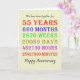 Cartão de 55 anos contando os anos, dias, meses, horas e minutos que você foi casado. Engraçado, mas com uma dentro romântica. Um cartão para dar pausa para pensar! Foram tidos em conta anos saltos!
