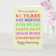O cartão de aniversário de casamento de 41ruas, contando os anos, dias, meses, horas e minutos que você foi casado. Engraçado, mas com uma dentro romântica. Um cartão para dar pausa para pensar! Foram tidos em conta anos saltos!