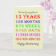 Cartão de aniversário de casamento de 13, contando os anos, dias, meses, horas e minutos que você foi casado. Engraçado, mas com uma dentro romântica. Um cartão para dar pausa para pensar! Foram tidos em conta anos saltos!