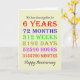 Cartão de aniversário de casamento de 6, contando os anos, dias, meses, horas e minutos que você foi casado. Engraçado, mas com uma dentro romântica. Um cartão para dar pausa para pensar! Foram tidos em conta anos saltos!