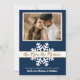 Cartões de Anúncio de Gravidez de Natal com Floco de Neve Azul, Dourado e Branco. Esperando pais! O moderno roteiro de tipografia dourada "quanto mais merrier" é o cartão para compartilhar suas boas notícias com a família e os amigos no feriado. Possui um grande floco de neve branco sobre fundo de cor do marinho médio e um modelo de foto horizontal com um pequeno sotaque dourado. Nos pontos brancos traseiros sobre fundo azul. É fácil personalizá-lo. Se precisar de ajuda ou itens correspondentes, entre em contato com o designer!