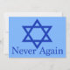 Nunca Mais Escrita em azul num cartão de saudação ao lado da Estrela de David para lembrar todas as pessoas judaicas que morreram no Holocausto. Nunca esqueceremos e nunca mais deixaremos que isso aconteça. Vamos resistir e lutar se algo acontecer com os supremacistas brancos ascensão ao poder.