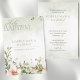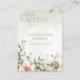 Um belo cartão de memória de aquarela para o batismo sagrado em cores cor-de-rosa pincelado e fundo verde-claro. Projetado para o batismo de uma menina, com uma doce ilustração das flores. Guarde seus amigos e família da celebração do batismo.