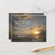 Este cartão de memória de versículos da Bíblia cristã ajuda a memorizar e meditar nos versículos bíblicos que se concentram na esperança, alegria e paz na vida. Ele apresenta Romanos 15:13, que diz: "Que o Deus da esperança os encha de toda alegria e paz em confiar nele, para que vocês transbordem de esperança pelo poder do Espírito Santo". Ele apresenta um nascer do sol no oceano com o versículo bíblico e citação de um lado, e apenas a citação do outro lado. Esta é uma ótima ferramenta para ajudar a memorizar as Escrituras.