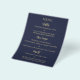 Cartão de Menu Azul Dourado de Casamento Marinho E