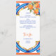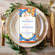 Ela encontrou seu cartão de cardápio azul-alaranjado principal, modelo, azulejo azul Majjolica espanhola, chás de panela mediterrâneos espanhóis, com moderno roteiro casual, bom para as funções de verão ao ar livre cartões de menu personalizados.