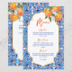 Ela encontrou seu cartão de cardápio azul-alaranjado principal, modelo, azulejo azul Majjolica espanhola, chás de panela mediterrâneos espanhóis, com moderno roteiro casual, bom para as funções de verão ao ar livre cartões de menu personalizados.