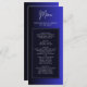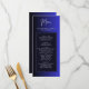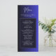 "Cartões de Menu Blue Wedding" são cartões usados em um casamento que são projetados com um tema de cor azul. As placas de menu são normalmente colocadas em cada configuração de mesa durante uma recepção de casamento para informar os convidados sobre as opções de comida e bebida que serão servidas durante a refeição. A incorporação de um tema de cor específico, como o azul, no design destes cartões de menu pode ajudar a melhorar a estética geral e a decoração da recepção de casamento. O azul pode suscitar sentimentos de calma, elegância e sofisticação. Dependendo do tom específico de azul que você escolher, ele também pode representar diferentes emoções. Menos tons de azul podem transmitir uma sensação de serenidade e tranquilidade, enquanto matizes mais profundos podem evocar uma atmosfera mais formal e refinada. Os cartões de menu devem indicar claramente os cursos e pratos que serão servidos durante a refeição. Essas informações poderiam ser apresentadas de forma clara e organizada, possivelmente com títulos para cursos diferentes (aperitivos, cursos principais, sobremesas, etc.). A inclusão de breves descrições de cada prato pode ajudar os convidados com restrições ou preferências dietéticas. Como os cartões de menu serão colocados nas mesas juntamente com outros itens decorativos, certifique-se de que a cor azul dos cartões de menu complementa o esquema geral de cor e as decorações usadas no local da recepção de casamento.