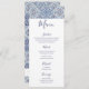 Cartão de Menu Moderno com belos azulejos azuis. Faz parte da nossa coleção de azulejos do Mediterrâneo.