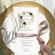 O menu "Chic floral" inclui os seus cursos iniciais, entradas e sobremesas em letras elegantes, com os seus nomes e a data de casamento rodeados por uma camada aquosa de flores e folhagem em rosa-claro, burgundy marsala, marfim e verde-primavera. Coordena com a nossa coleção de casamento Blush Romance. Use os campos modelo para adicionar as informações do menu e clique em "Personalizar" para reposicionar os elementos, se necessário.