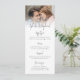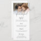 Disponível impresso ou digitalmente. Cartão de Menu Boho Wedding de Script de Sobreposição de Foto Informal Um design totalmente personalizável com sua foto atrás de uma camada de cores graduada, seus nomes e detalhes do menu. Fácil de personalizar com sua foto e palavras favoritas.
