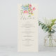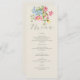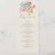 Adicione um toque romântico e fresco à sua recepção com este elegante menu de casamento da primavera. Adorado com flores silvestres de cor aquática macia em cor rosa-pastel, amarelo, azul e verde, este modelo de menu vertical complementa perfeitamente o jardim de primavera, o rústico e os casamentos com temas bitos. Liste seus deliciosos iniciadores, cursos principais e sobremesas em um layout na moda, fácil de ler, que seus convidados apreciarão.