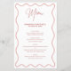 Projetada para coordenar com a nossa coleção de bordas onduladas, esta placa de menu moderna apresenta o limite de tendências e ondas populares, cor-de-rosa, sobre fundo branco. Se você quiser chamar a atenção de seu convidado com um pop de cor no seu convite de tendências, esta suíte é perfeita para você. Para personalização mais avançada deste design, por exemplo, alteração do layout, da fonte ou do tamanho do texto, clique no botão "PERSONALIZAR" acima. Por favor, entre em contato comigo para qualquer pergunta!